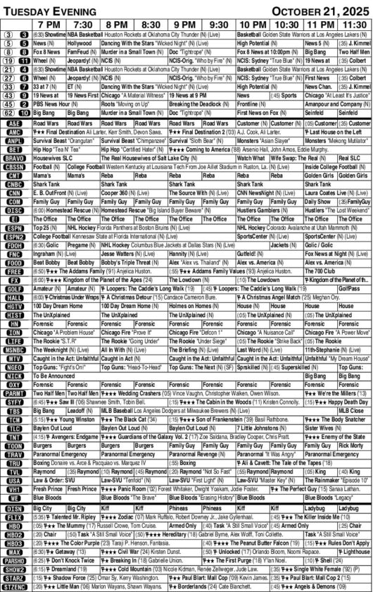 Tuesday evening TV listings