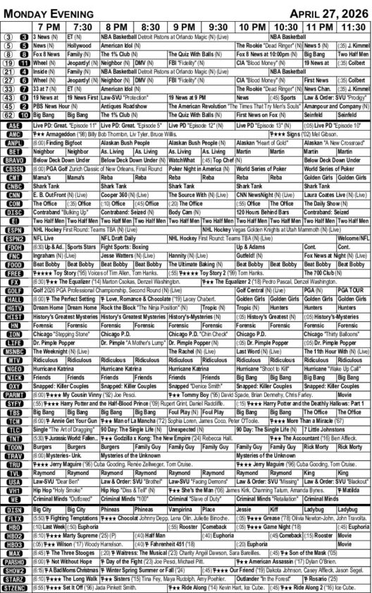 MONDAY EVENING TV LISTINGS