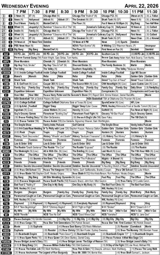 WEDNESDAY EVENING TV LISTINGS
