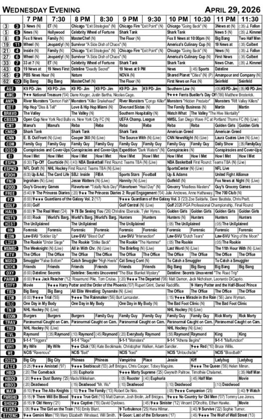 WEDNESDAY EVENING TV LISTINGS