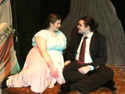 However, the headset mics used by some of the characters were hit or miss. They were visible on the actors’ faces but frequently seemed to be silent. Hannah Misko was saddled with a particularly static-y microphone, but even that couldn’t detract from her beautiful rendition of “Blue Wind” or her lead vocals on the finale, “The Song of Purple Summer.”