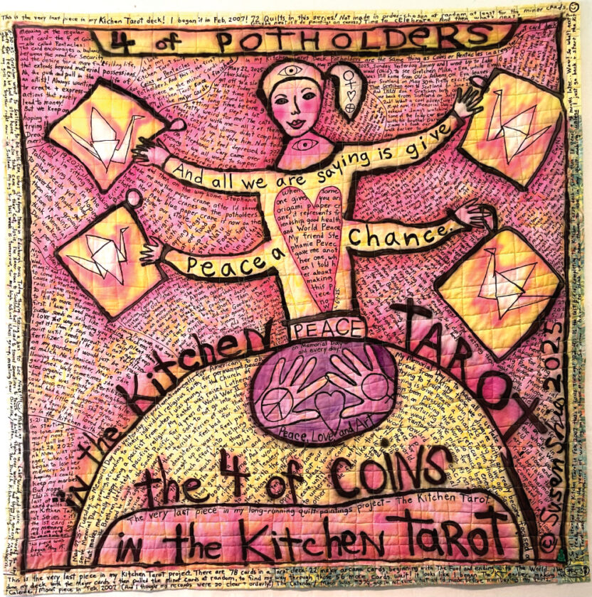 Submitted photo “The 4 of Potholders in the Kitchen Tarot” by Susan Shie is one of the works featured in the g oup show “From Woman 19,” one of three exhibitions opening Tuesday at the McDonough Museum of Art.