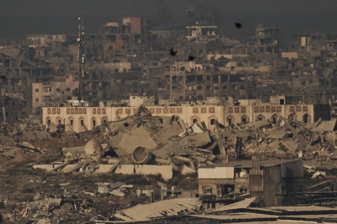 - Buildings that were destroyed during the Israeli ground and air operations stand in the northern Gaza Strip during the sunrise, as seen from southern Israel, Friday, Oct. 17, 2025. (AP Photo/Leo Correa)