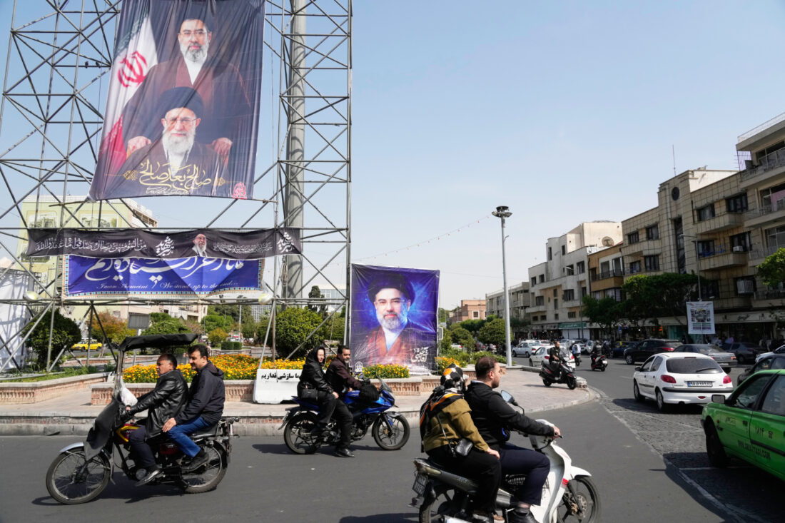 AP People drive their motorbikes past billboards showing Iran's Supreme Leader Ayatollah Mojtaba Khamenei, top and right, and his father, the slain Supreme Leader Ayatollah Ali Khamenei, who was killed in U.S. and Israeli strikes on Feb. 28, in downtown Tehran, Iran, on Thursday.