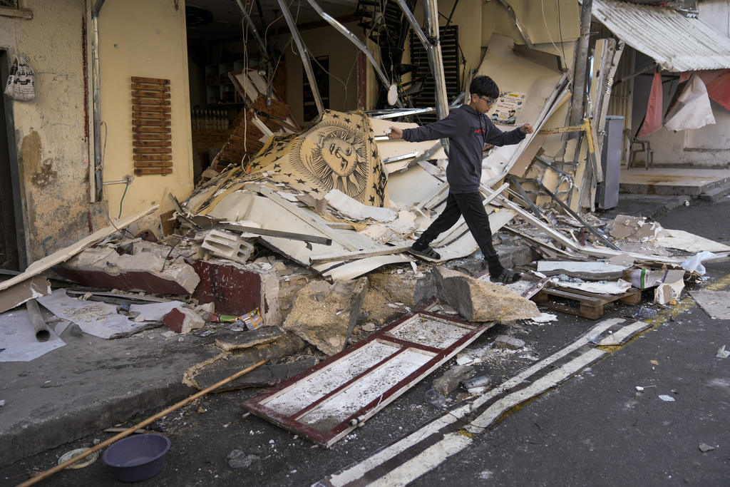 A Palestinian boy walks through the aftermath of the Israeli military raid on Nur Shams refugee camp today in the West Bank. Israel's forces raided a refugee camp in the northern occupied West Bank, killing at least six Palestinians, Palestinian health authorities said early today. (AP Photo/Majdi Mohammed)