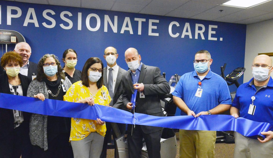 022322...R BIZ-REHAB 1...Bazetta...02-23-22...Ribbon cutting at Elm Road Rehabilitation Services (A service of Hillside Rehabilitation Hospital, A Steward Family Hospital) From Left: Karen Chase, Registration Manager, Bob McBride, Bazetta Trustee, Shannon Horner, Registration Coordinator, Karen Hartman, Lead Physical Thrapist, Jamie Gunia, Regional Director of Regional Services, Guy Coviello, President/CEO of Youngstown/Warren Regional Chamber, Jeff Koontz, Hillside Hospital Interim Administrator (with scissors) Andrew Zizzo, Physical Therapist, and Bill Sarisky, Physical Therapist...by R. Michael Semple