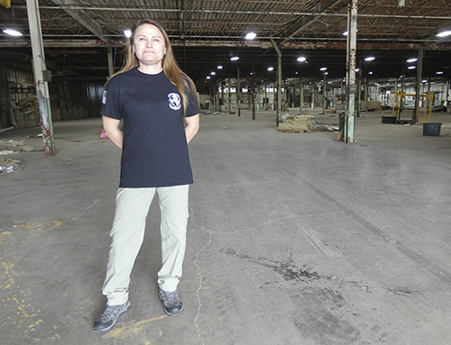 Staff photo / Raymond L. Smith Jenny Lynn Smith stands in the new home of Clover Recycling on West Market Street. The family-owned, nonprofit recycling business is moving from Howland to the former Peerless Winsmith building.