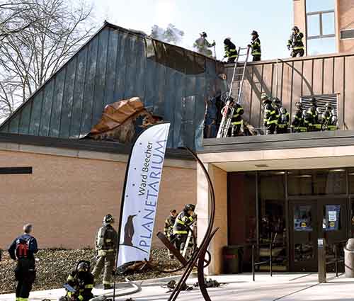 Curt Spivey, Ward Beecher Planetarium engineer, said the fire apparently began about 12:30 p.m. on the exterior of the building, a portion that holds “mechanicals,” such as electrical systems and heating and ventilation.