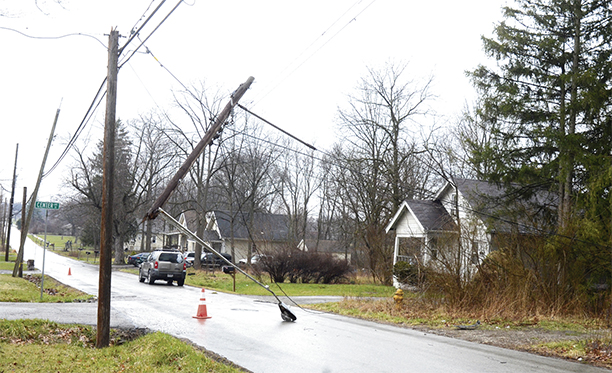 A downed streetlight and power lines at the corner of Draper Street SE and Center Avenue SE in Howland forced the section’s closure following windstorms over the weekend.