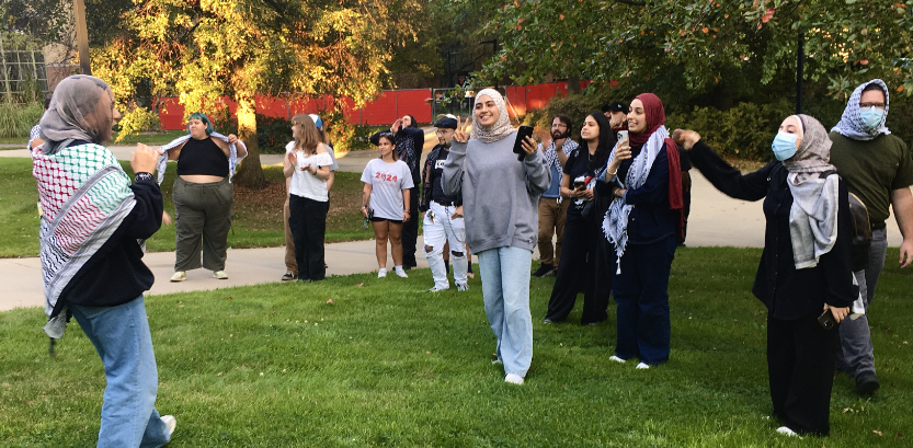 Afterward, Glenn Hall and Courtney Boyle, both of whom described themselves as “community members,” joined the group of students in front of DeBartolo Hall for a brief, peaceful protest in which they chanted “Free Palestine.”