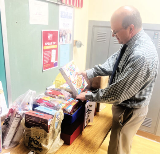 Champion High School teacher James Sheldon sorts boxes of cereal collected by his students as part of Sheldon’s Make a Difference project challenging his students to look to their communities and make a meaningful difference. Thirteen groups of students participated. The project pictured is the Super Cereal Heroes Campaign, which helps feed families at the Warren Family Mission.