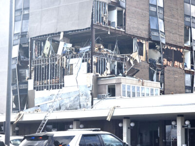 The explosion occurred at approximately 12:30 p.m. The blast tore away portions of the building’s outer walls and emergency responders could be seen working their way through that area, apparently in search of potentially injured or trapped residents.