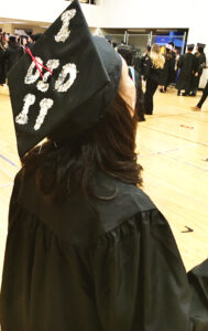 Correspondent photo / Sean Barron Sonia Wilson-Green of Youngstown displays the inscription on her cap before receiving her degree during Youngstown State University’s fall commencement Saturday morning in Beeghly Center.