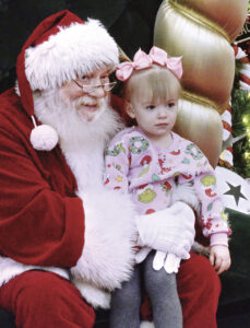 Nikki Novakovich, 2, of McDonald, seems a little ho-hum about getting her photo taken with Santa Claus on Wednesday afternoon at the Eastwood Mall in Niles, despite the efforts of her mother, Megan Novakovich, and grandmother, Erika White of McDonald. Santa was being portrayed by Martin Taub of Brookfield. EDI Imaging of Columbiana handles Santa photo taking for the mall.