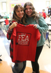 Nearly 50 students wrote a letter thanking their favorite teacher — which could have been anyone from kindergarten until their current grade — and telling them why they chose them. During homeroom, students hand-delivered letters to their teachers along with a T-shirt that reads “I’m an FEA favorite teacher.”