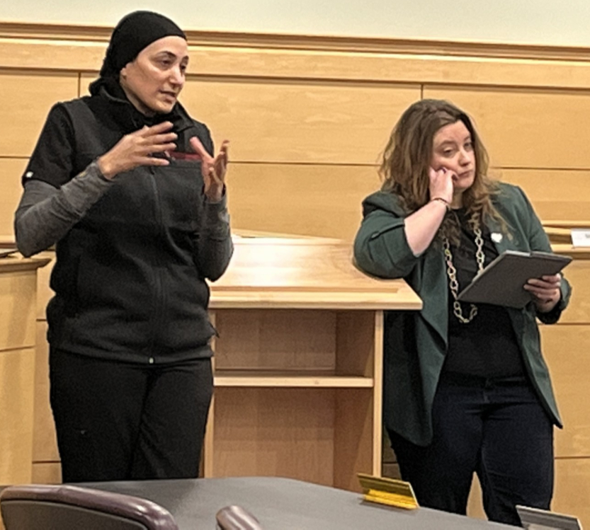 Staff photo / Bob Coupland Lena Esmail, CEO of QUICKmed, left, and Kristen Olmi, CEO of KO Consulting, speak to Girard City Council and city officials Monday on what would be involved for the city to have an urgent/primary care facility to serve local residents. Olmi said she will see what grants and funding are available from different foundations for such a project.