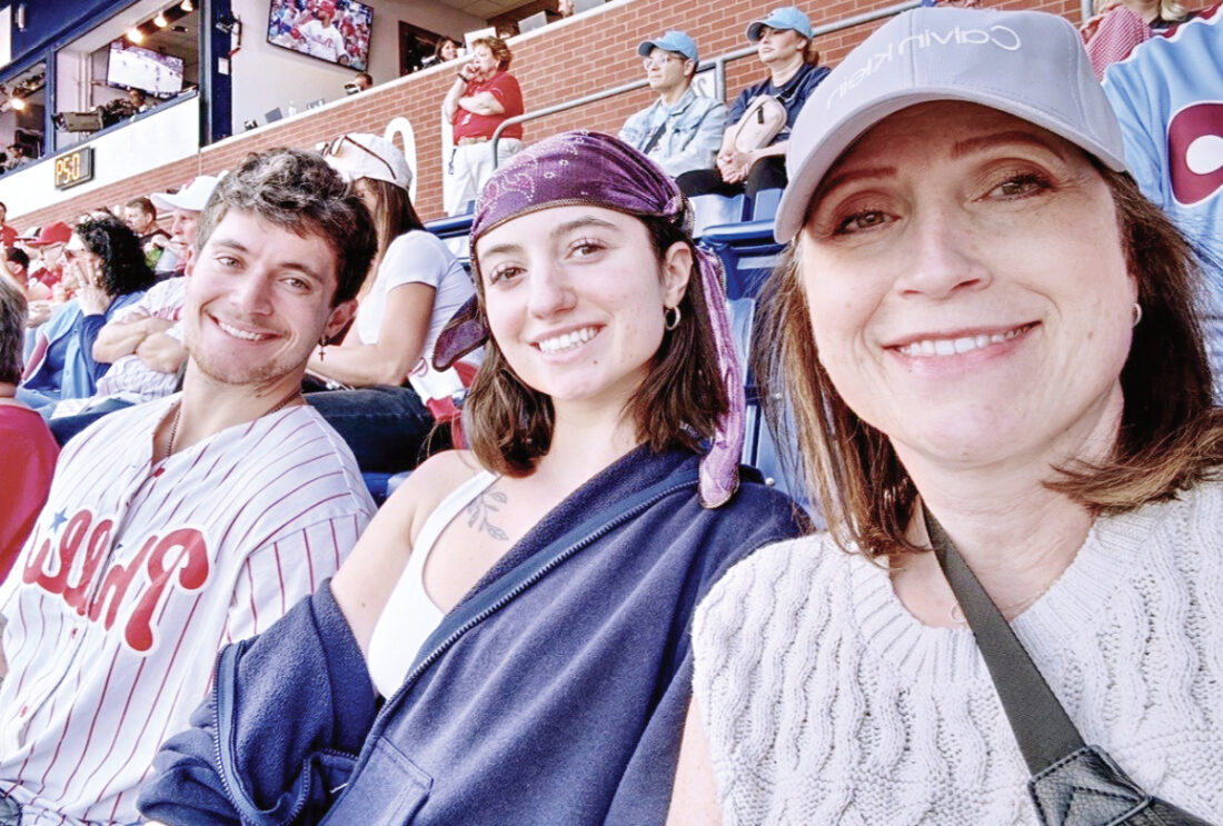 Submitted photo Juliette Dietl, 20, a 2024 Boardman High School graduate, center, attends a baseball game while being treated in Philadelphia for glioblastoma. Pictured with her are her boyfriend, Xavier Graham, and mom, April Stanislaw.