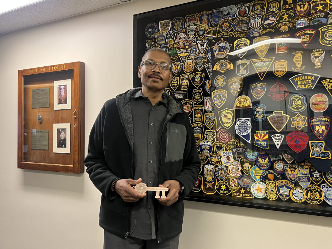 Correspondent photo / Chris McBride Warren Police Capt. Jeff Cole inside the Warren Police department after receiving his key to the city from Warren Mayor Doug Franklin.