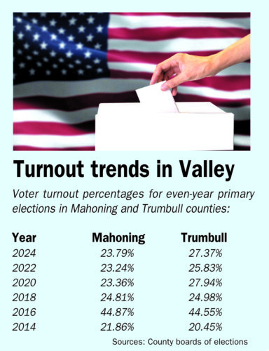 Tom McCabe, Mahoning County Board of Elections director, said he predicts turnout for the May 5 primary in his county to be between 23% and 25%.
