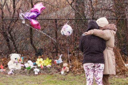 AP Nichelle Wilson, left, the grandmother of one of the girls whose bodies were found earlier this week, Amor Wilson, stands with her friend Sharon Hunter, right, at the site of a memorial Thursday in Cleveland.