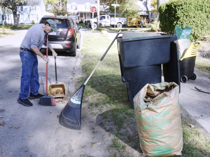 Retired carpenter Al Wevers of Warren cleans debris from the front of his Roselawn Avenue NE home on Wednesday before the forecasted rain moves into the area today. The leaves in northeast Ohio are taking their time falling this season and cleanup will continue ...