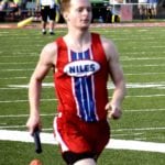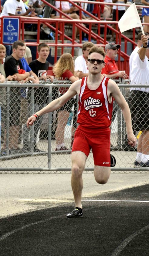 - The Niles Times / John Vargo Niles’ Nathan Lanham runs his leg of Thursday’s 4×800-meter relay final in the Division II Austintown Regional.