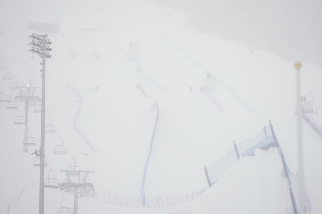 More than 4 inches (10 centimeters) of snow fell by midday Tuesday. The men’s slopestyle final is scheduled for Wednesday, when the forecast looks better.