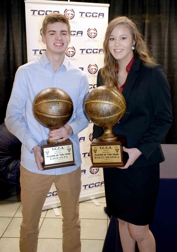 Tribune Chronicle / John Vargo Trumbull County Coaches Association players of the year, announced Sunday at the group’s banquet, are Gage Elza of Bristol and Bailey Drapola of Brookfield.