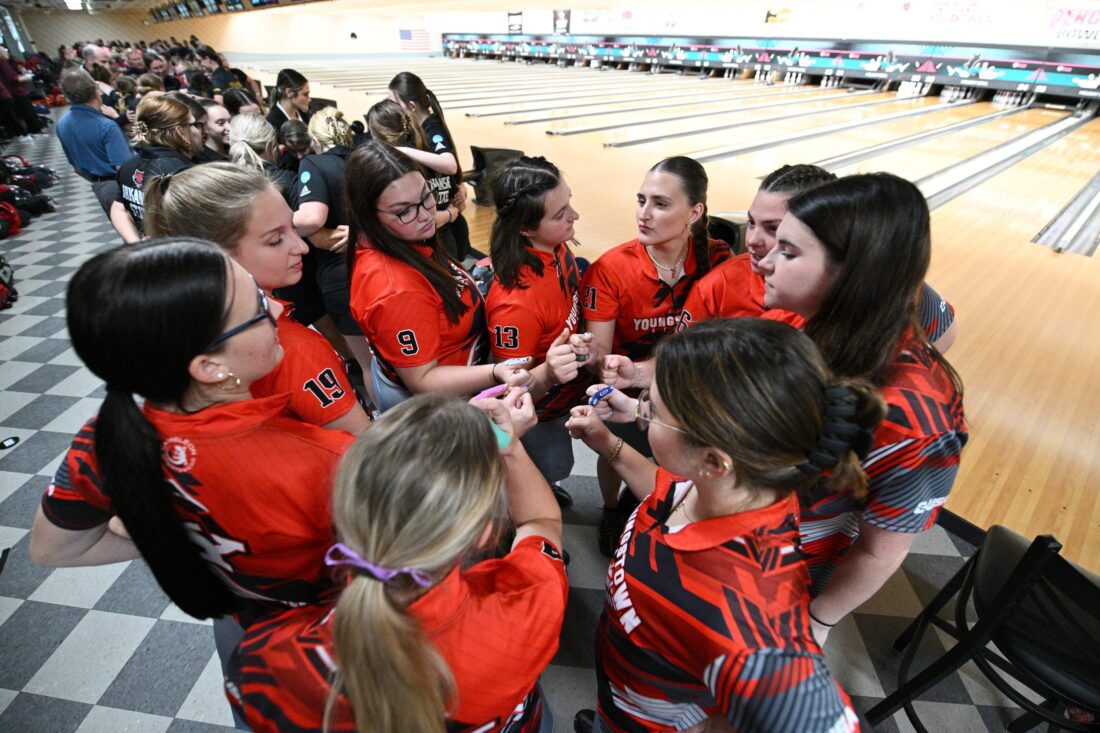 Correspondent file photo / Robert Hayes. The Youngstown State bowling team gathers during the Penguin Classic on Oct. 13 at Holiday Bowl in Struthers.