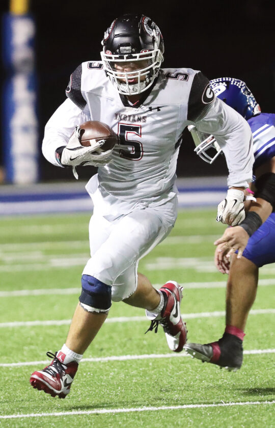 Correspondent file photo / Michael G. Taylor Girard’s Allen Hess-Cardona (5) runs with the ball during the Indians’ loss to Poland at Dave Pavlansky Field on Oct. 11, 2024.