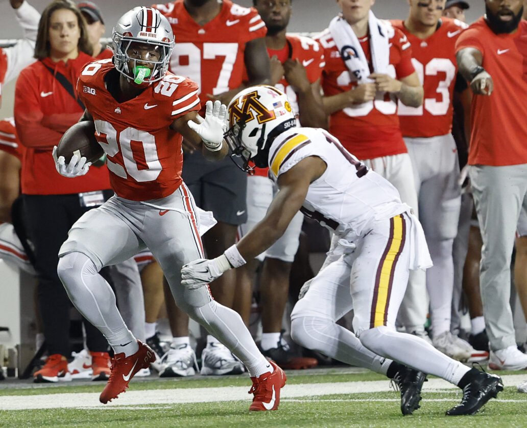 The Golden Gophers (3-2, 1-1) won the coin toss got a 27-yard field goal from Brady Denaburg before Ohio State’s defense shut them down the rest of the way. The Golden Gophers went 66 yards in 13 plays on their first drive before the Buckeyes held them to 35 yards on their next seven series, including five three-and-outs.