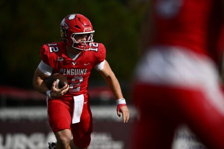 Last week, he accounted for five touchdowns and a program-record 528 total yards of offense. This week, he replicated his five-touchdown performance, which included hauling in his first career receiving touchdown, as the Penguins did what they needed to do, dominating winless Murray State 51-17 on Saturday during Homecoming at Stambaugh Stadium.