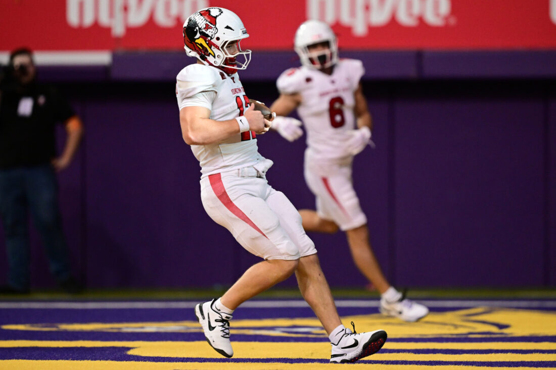 Youngstown State quarterback Beau Brungard scores a touchdown during the first half of their game against Northern Iowa at the UNI-Dome in Cedar Falls, Iowa.