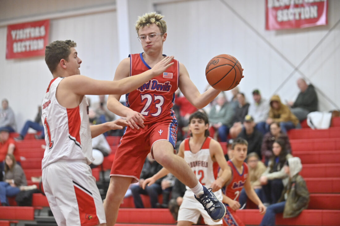 In the waning seconds of the third quarter, Bloomfield’s Mason Pequignot heaved up a shot from half court, falling in at the buzzer much to the delight of everyone in the building, even the Red Devils. A good shot is a good shot.