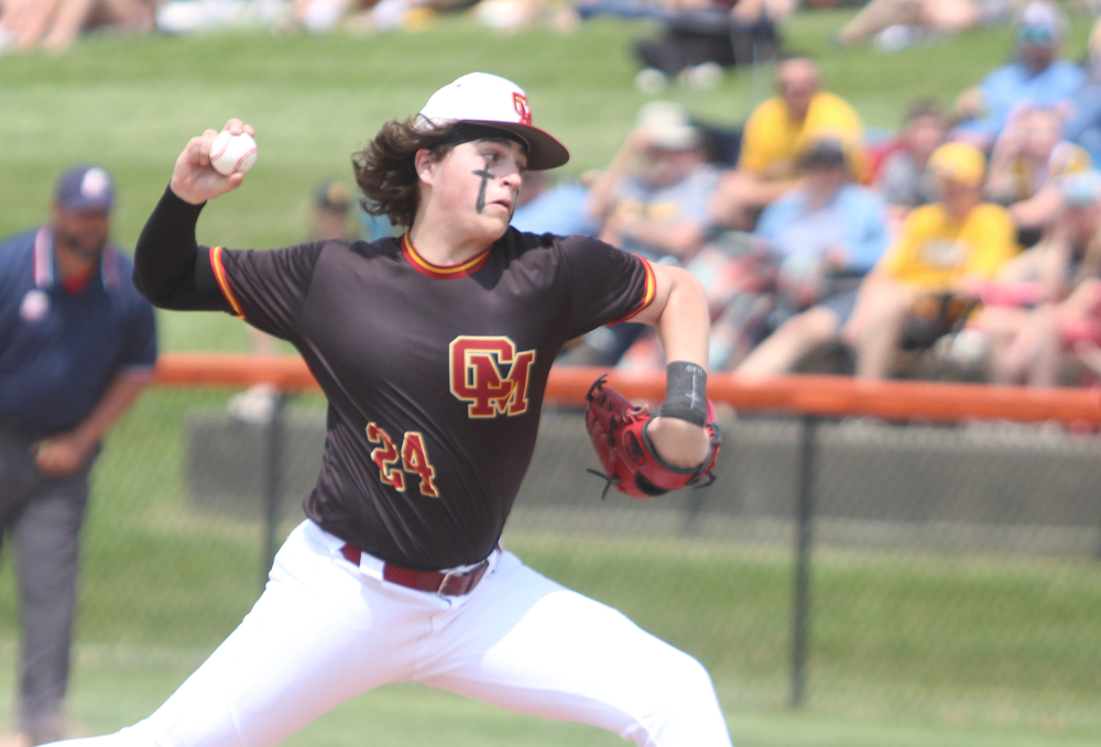 Staff file photo / Dan Hiner Cardinal Mooney pitcher Ben Oddis delivers during a regional semifinal against Waynedale on June 4 at Massillon.