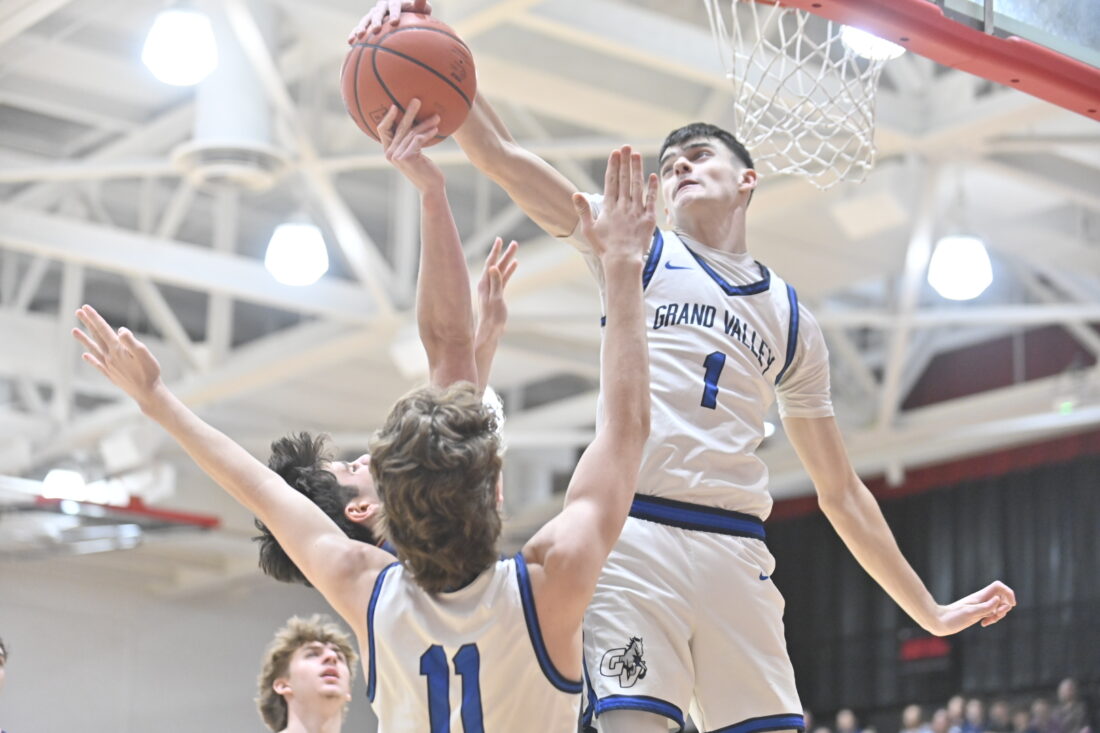 The Mustangs’ scoring duo of Solomon Schultz and Carter Turk led the way for Grand Valley, scoring 24 and 23 points, respectively.