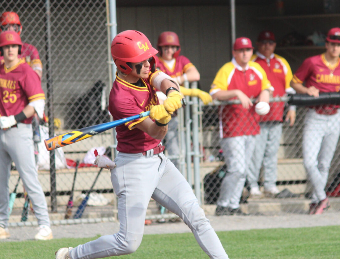 Staff photo / Dan Hiner. Cardinal Mooney’s Kaden Reese swings at a pitch during the third inning of a game against Springfield on Wednesday at Springfield High School.