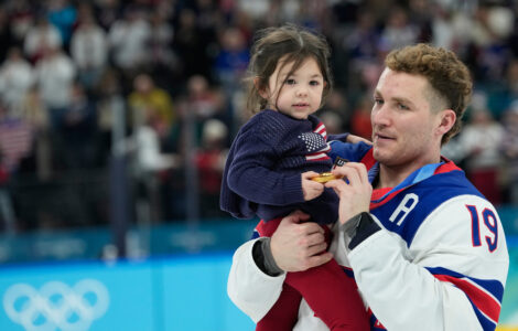 MILAN (AP) — Johnny Gaudreau's No. 13 jersey was hanging in the U.S. locker room throughout the Olympics, and Dylan Larkin and Matthew Tkachuk carried it around the ice after the U.S. beat Canada in overtime to win the country's first gold medal at the Games since 1980.
