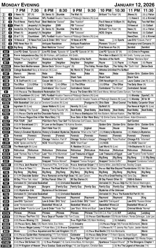 Monday evening TV listings